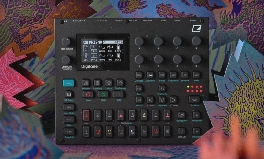 Digitone II — мультитембральный инструмент с 16 дорожками, 16 голосами, расширенной системой фильтров, эффектов, модуляции и фирменным секвенсором.