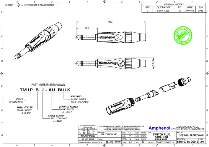 Разъем 1/4" Phone Amphenol ACPS-GB-AU