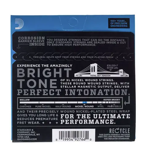Струны для электрогитар D'Addario EXL 120-7 XL NICKEL WOUND