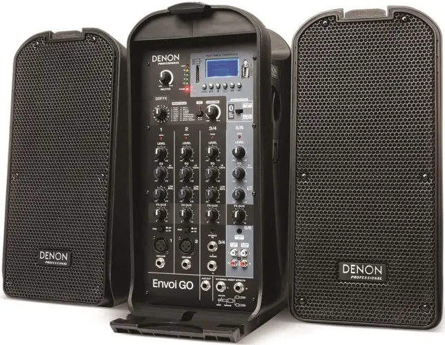 Наверное, главным преимуществом акустических систем Denon можно считать наличие встроенного аккумулятора, который способен на протяжении 3-6 часов работать без подключения к сети. При этом качество музыки, громкость и другие важные параметры не ухудшаются. Комплект Denon – это две мощные колонки с выходной мощностью в среднем, на 150 Вт. В основе АС лежит микшер, который отвечает за слаженную и стабильную работу подключаемых аксессуаров. Специалисты Денон уделяют особое внимание защите своих устройств, поэтому скрывают важные механические детали прочным корпусом, который одновременно снижает вибрации, защищает колонки и микшер от физических повреждений.