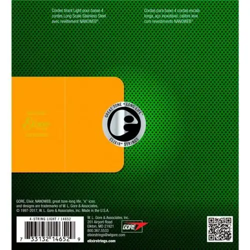 Струны для бас-гитар Elixir 14652 Nanoweb Light