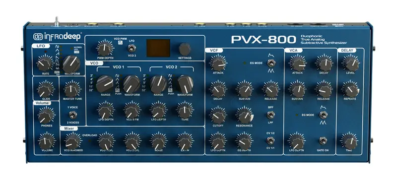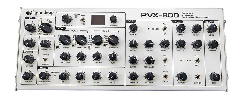 InfraDeep — это команда из Новосибирска, которая занимается производством синтезаторов. Визитной карточкой стал аналоговый синтезатор PVX-800. Инструменты собраны вручную из высококачественных материалов.