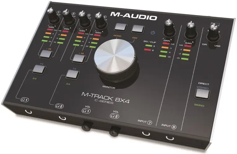 Наличие необходимого числа входов/выходов на внешней звуковой карте — один из определяющих параметров. Для записи вокала нужно м аудио звуковая карта внешняя купить с входами TRS/XLR. Они позволяет напрямую подключать все студийные микрофоны, оснащенные встроенным усилителем. Для этого гнезда TRS/XLR звуковой карты имеют фантомное питание. Музыкальные рабочие станции согласуются с компьютером напрямую, поэтому внешняя звуковая карта м аудио предназначена, прежде всего, именно для аналоговых источников звука. При выборе обратите внимание на ее аналоговую часть. Каждый вход должен иметь свой отдельный регулятор гейна. Очень удобны стрелочные или светодиодные индикаторы уровня, но с ними внешняя звуковая карта m audio цена заметно выше.