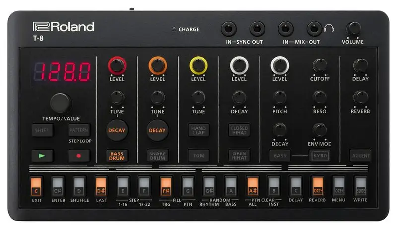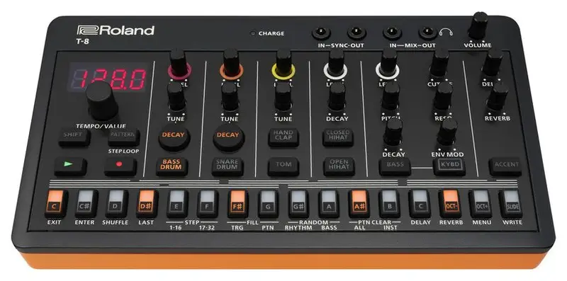 Флагман серии — Roland TR-8. Это очень удобная в управлении драм-машина. В нее встроена цветная светодиодная подсветка каждой клавиши. Этим обеспечено удобство работы на концертных площадках с любым освещением. В стандартный набор семплерных банков инструментов включен звук легендарных драм-машин TR-909 и TR-808. Каждая roland драм машина обладает аналоговым входом с возможностью обновления семплерной библиотеки. Цифровой вход MIDI/USB расширяет возможности инструмента и упрощает работу с ним.
