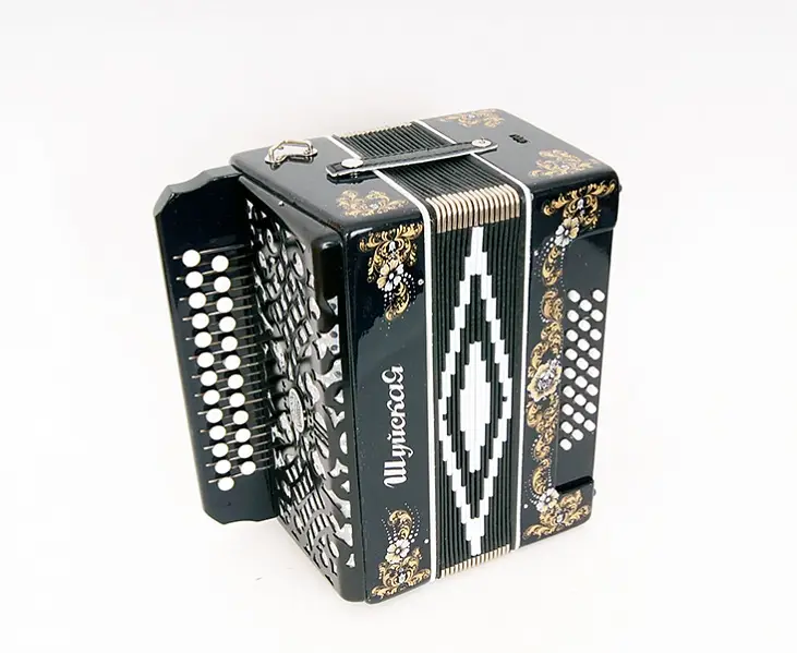 Корпус гармоней и баянов декорируется инкрустациями и оригинальной ручной росписью.