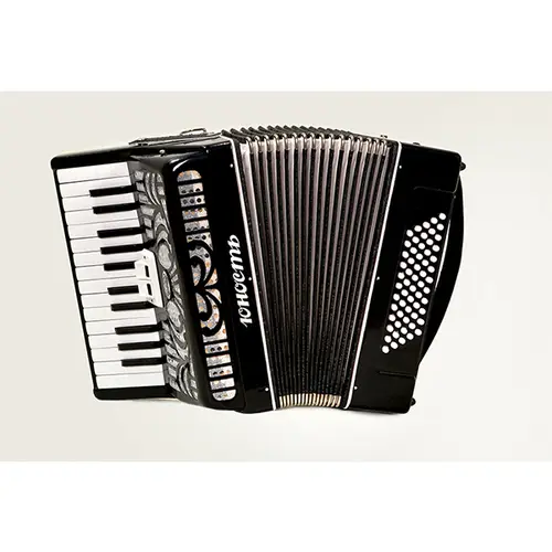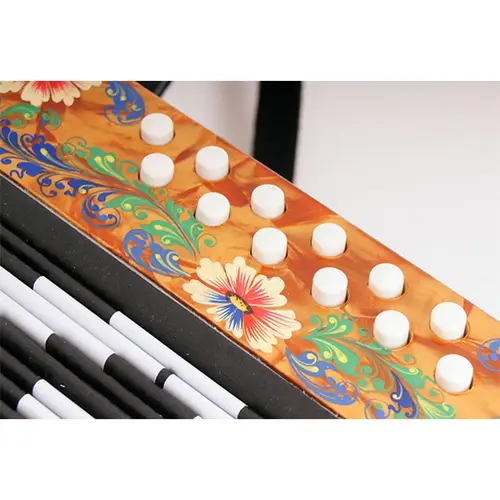 Корпус гармоней и баянов декорируется инкрустациями и оригинальной ручной росписью.