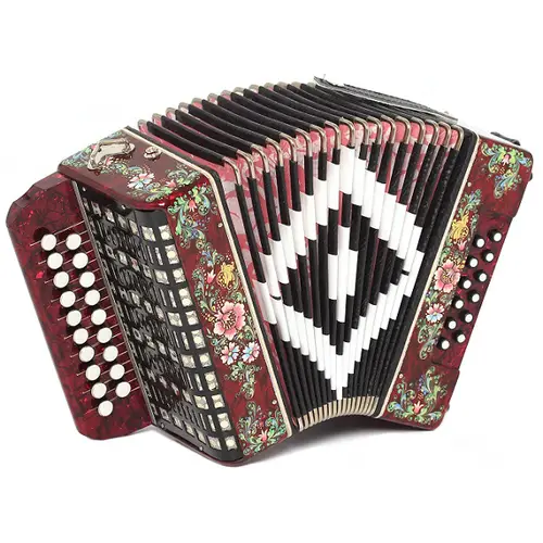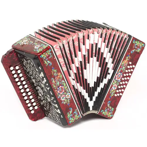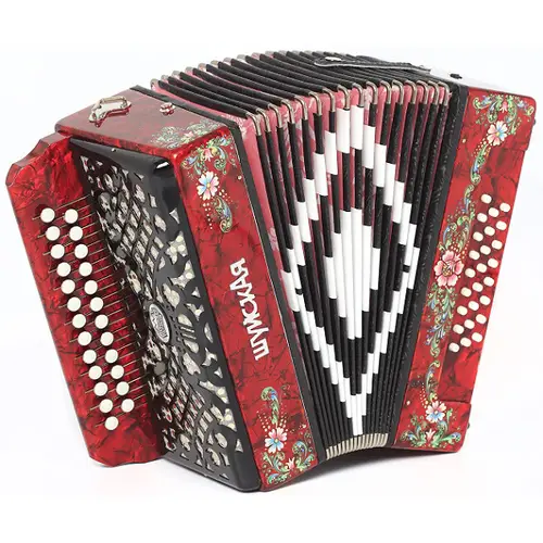 Корпус гармоней и баянов декорируется инкрустациями и оригинальной ручной росписью.