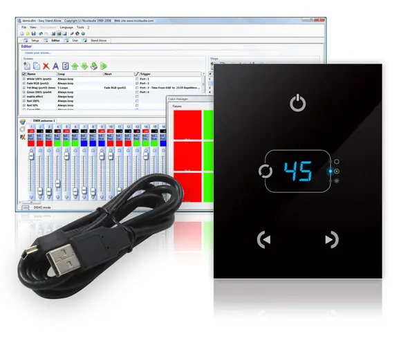 В линейке продукции, выпускаемой французской компанией присутствуют следующие позиции: контроллеры для управления световыми приборами; блоки питания для контроллеров; интерфейсы для управления архитектурным светом.