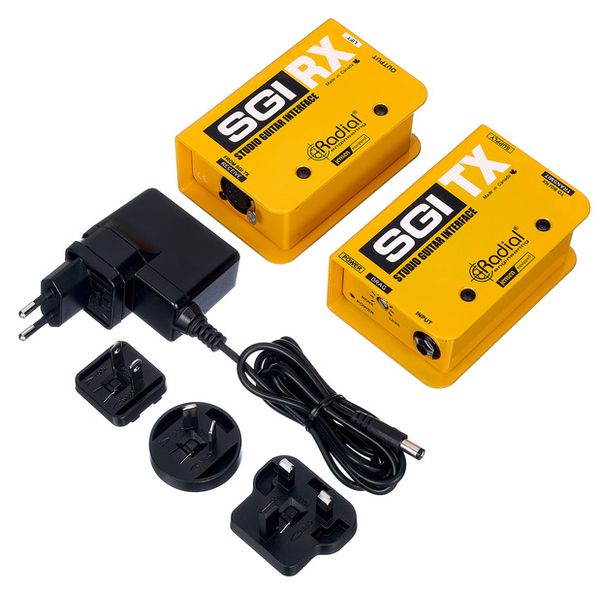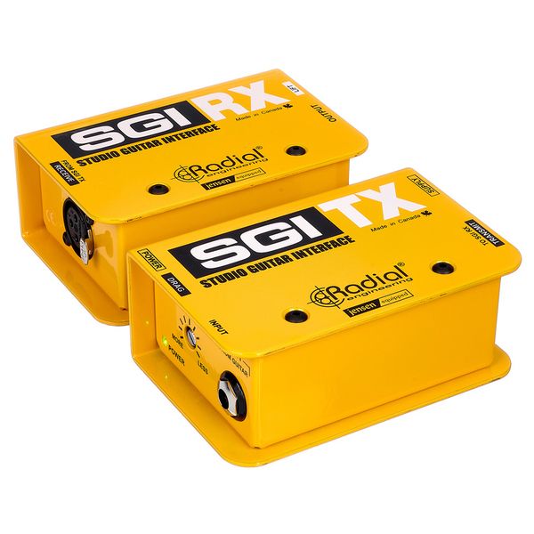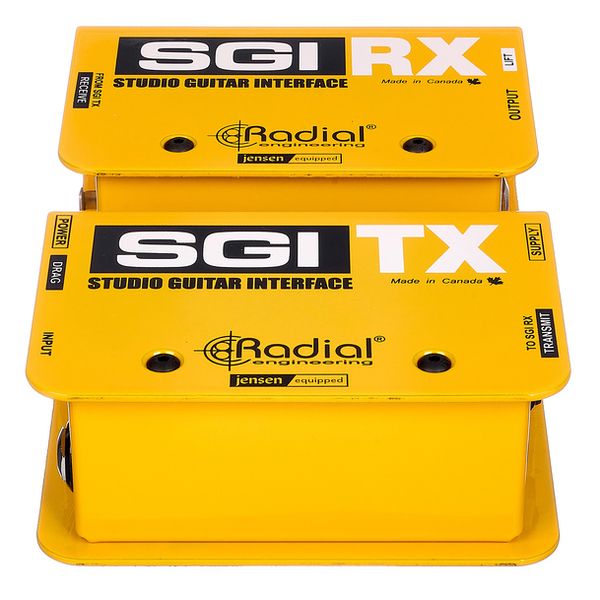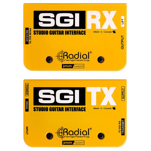 Radial Engineering SGI — активная система симметричной передачи инструментального сигнала для гитары и баса, предназначенная для работы на расстояниях до 100 метров без потери уровня, тембра и динамики. Комплект состоит из передатчика SGI TX и приёмника SGI RX, соединяемых стандартным балансным XLR-кабелем. Передатчик оснащён Hi-Z входом 6,3 мм и дискретной буферной схемой, формирующей балансный линейный сигнал, тогда как приёмник преобразует его обратно в инструментальный импеданс для корректной работы с усилителями и педалбордами. В конструкции используются премиальные трансформаторы Jensen, обеспечивающие гальваническую развязку, расширенный динамический диапазон и минимальный уровень шума. Система ориентирована на студийное и концертное применение, включая удалённое размещение усилителей и использование изолированных кабинетов.