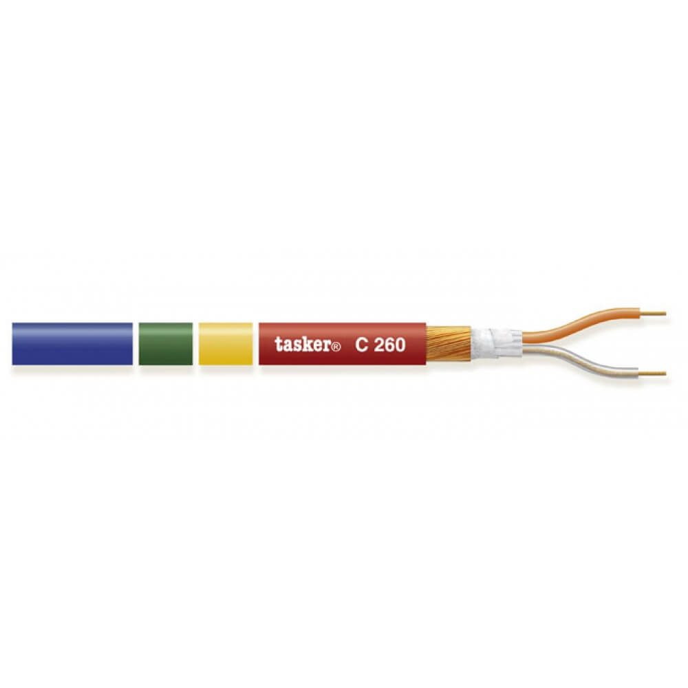 Tasker C260-Red — балансный микрофонный кабель низкой ёмкости с полной спиральной экранной оплёткой из красной меди OFC. Идеален для студийных и концертых условий, когда важна минимизация шума и потерь сигнала. Изоляция жил выполнена из компактного полимерного PE, одна жила окрашена в оранжевый, вторая — прозрачная. Наружная оболочка — ПВХ красного цвета.