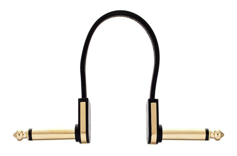 EBS PG-10 Flat Patch Cable Gold — инструментальный патч-кабель для педалбордов, разработанный для минимизации занимаемого пространства без компромиссов по качеству сигнала. Модель относится к серии Premium Gold и использует плоский кабель прямоугольного сечения с плоскими угловыми разъёмами, что позволяет размещать педали вплотную друг к другу. Контакты и корпус разъёмов выполнены из литого цинкового сплава с 24-каратным золотым покрытием, что снижает переходное сопротивление, повышает стабильность контакта.