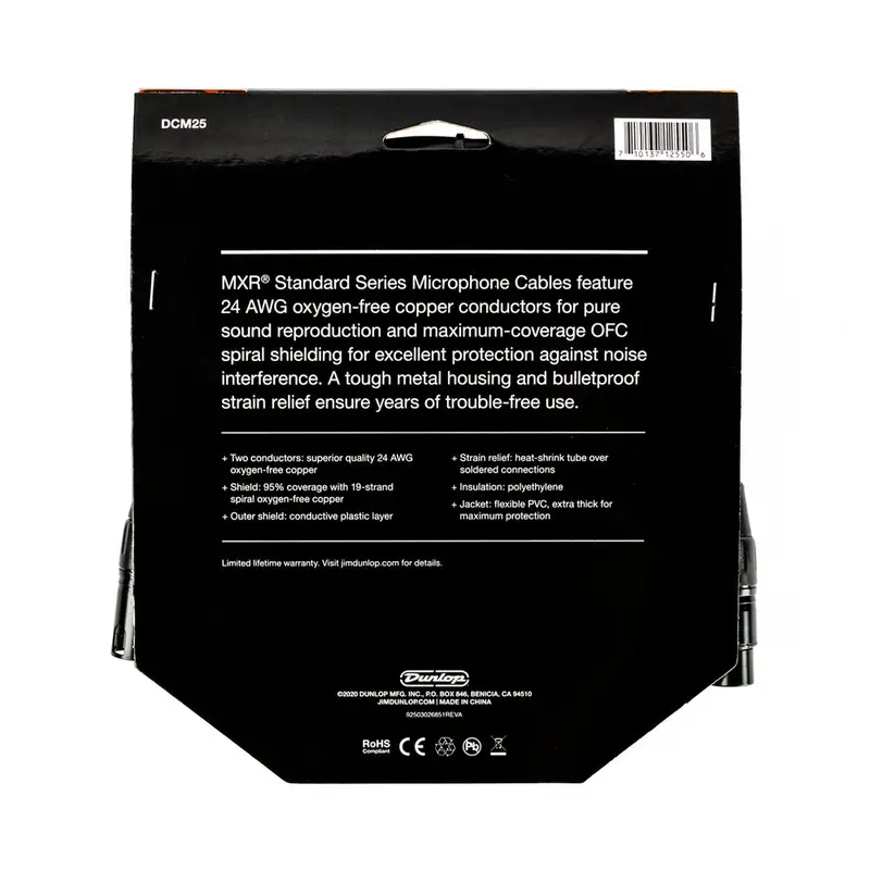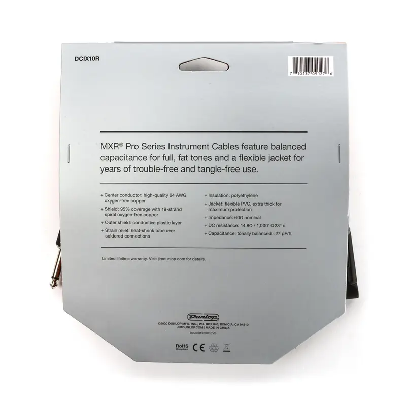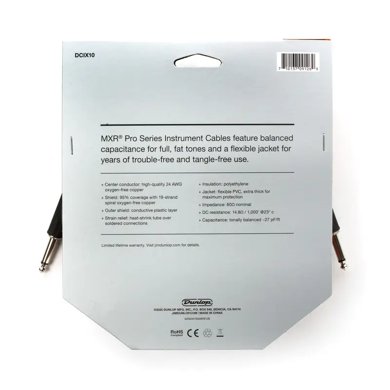 MXR DCP06SI Patch Cable — инструментальный патч-кабель длиной 15 см, предназначенный для соединения педалей эффектов в педалборде. Кабель оснащен угловыми разъемами 6,3 мм (1/4") типа "папа", что обеспечивает компактное и удобное подключение. Проводники изготовлены из бескислородной меди (OFC), что гарантирует чистую передачу сигнала без искажений. Спиральный защитный экран эффективно блокирует электромагнитные помехи. Прочная ПВХ оболочка защищает кабель от внешних повреждений.