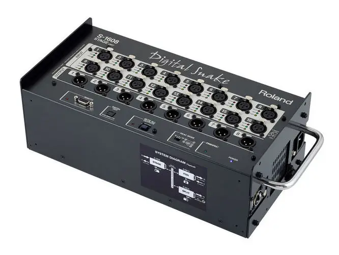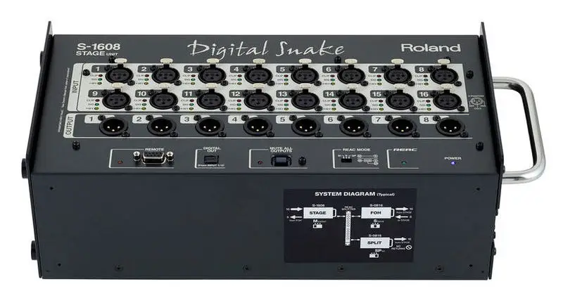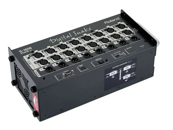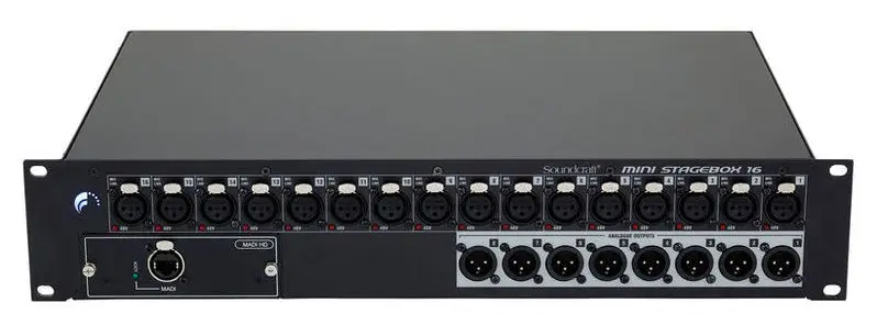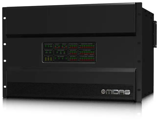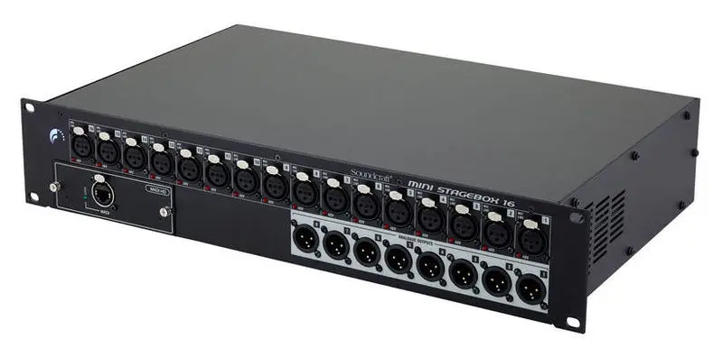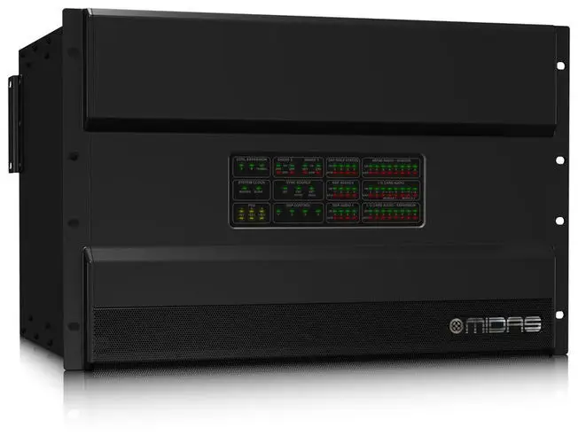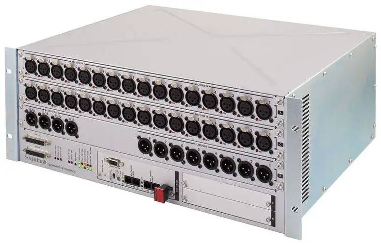 Коммутационный блок обеспечивает высокую плотность подсоединения каналов ввода-вывода и при этом занимает всего 4 юнита в рэковой стойке. Возможности блока могут широко настраиваться, но в данной конфигурации он поставляется с 32-мя микрофонными входами и 16-ю линейными выходами. Помимо этого присутствует 4 канала AES / EBU.