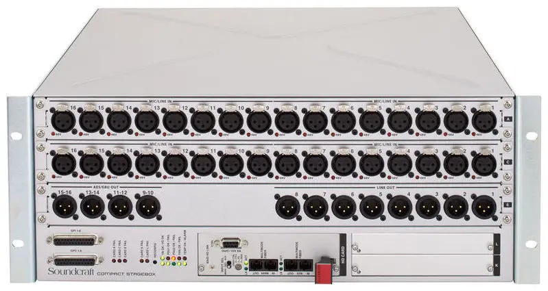 Soundcraft VI CSB 16 RJ 45 – это цифровой коммутационный блок, который является недорогим вариантом расширения числа каналов живого звука для микшерных пультов серии Soundcraft Vi, Soundcraft Si Series, Soundcraft Vi1™ и Soundcraft® SI Compact.