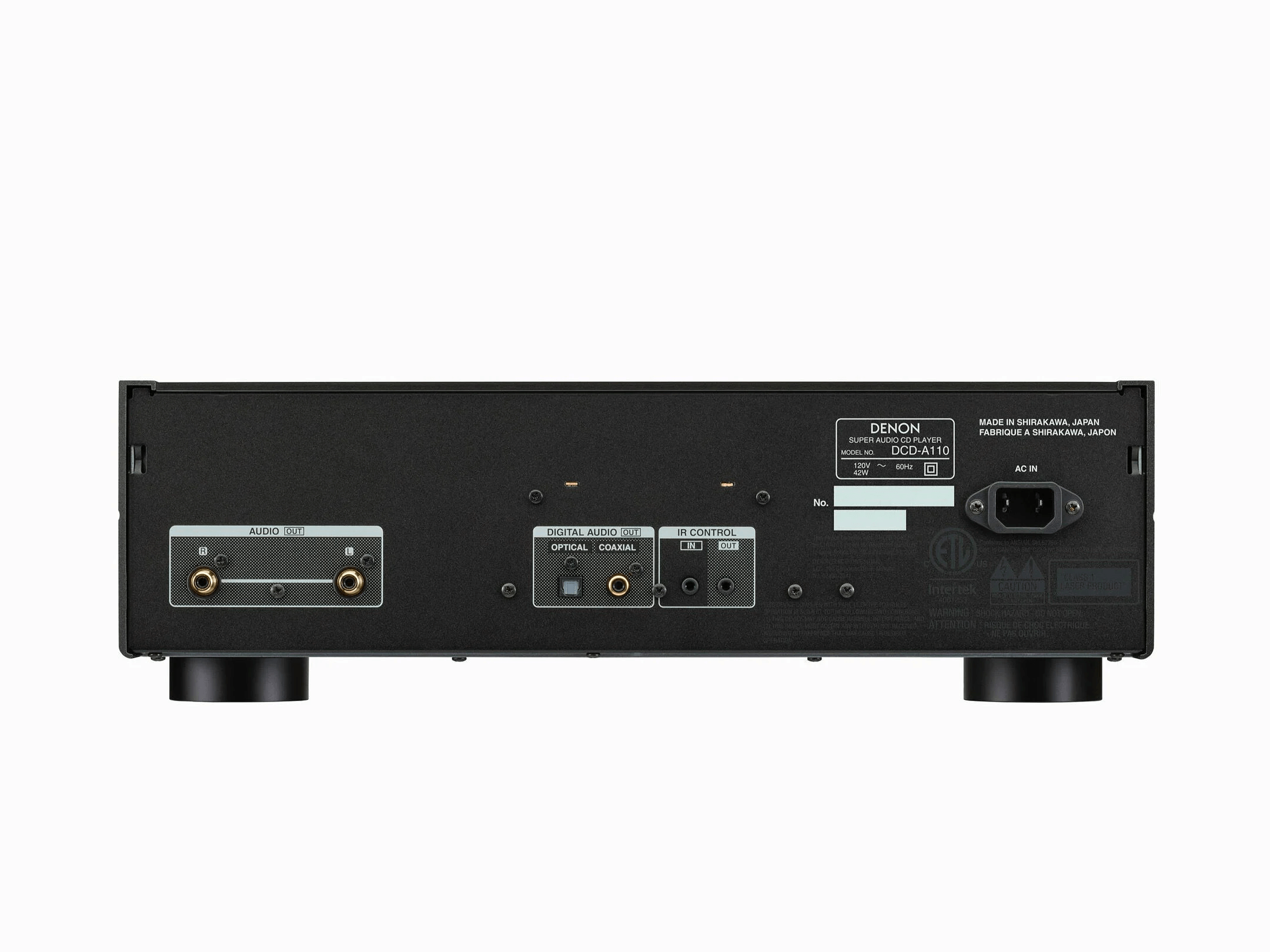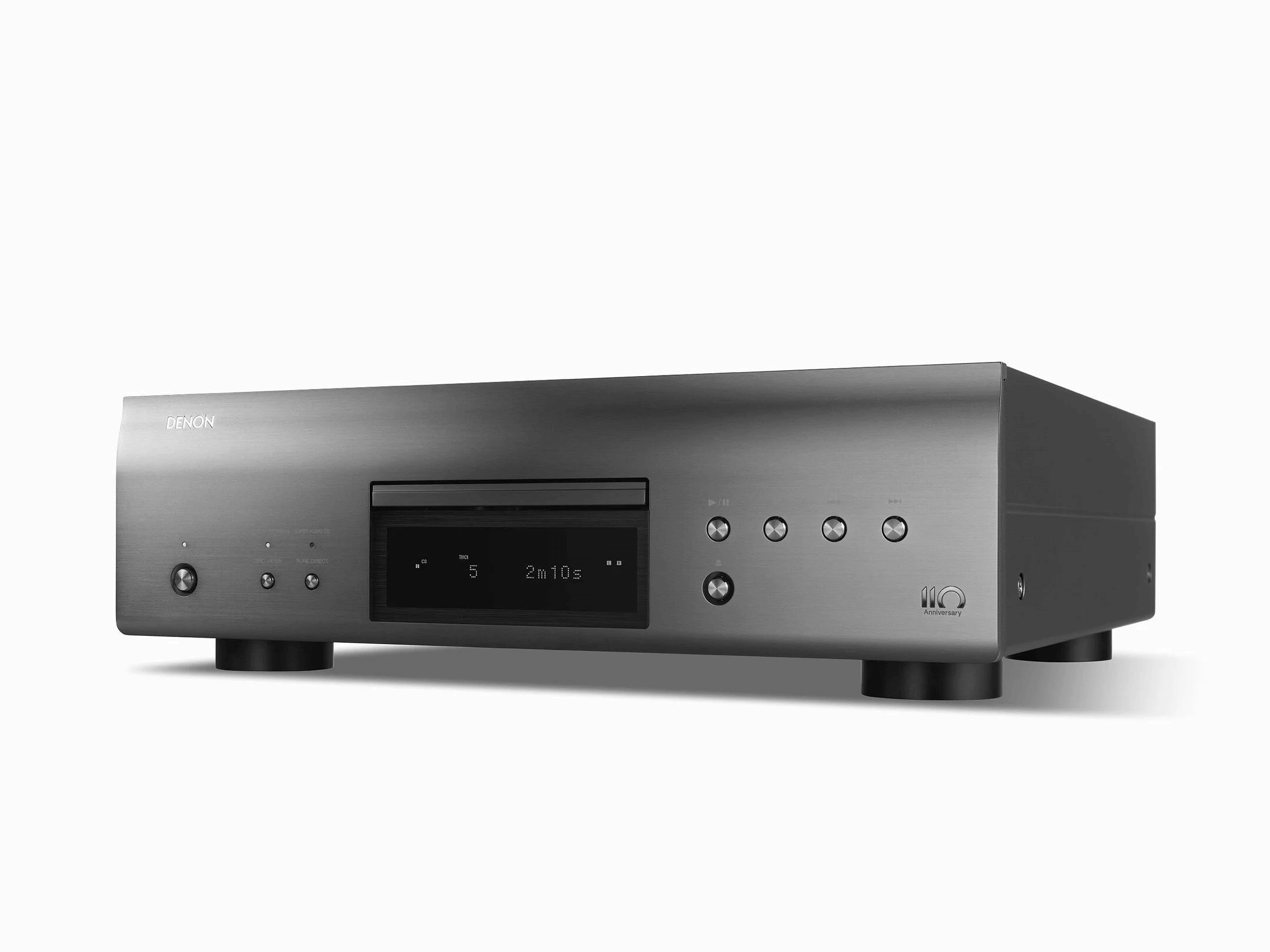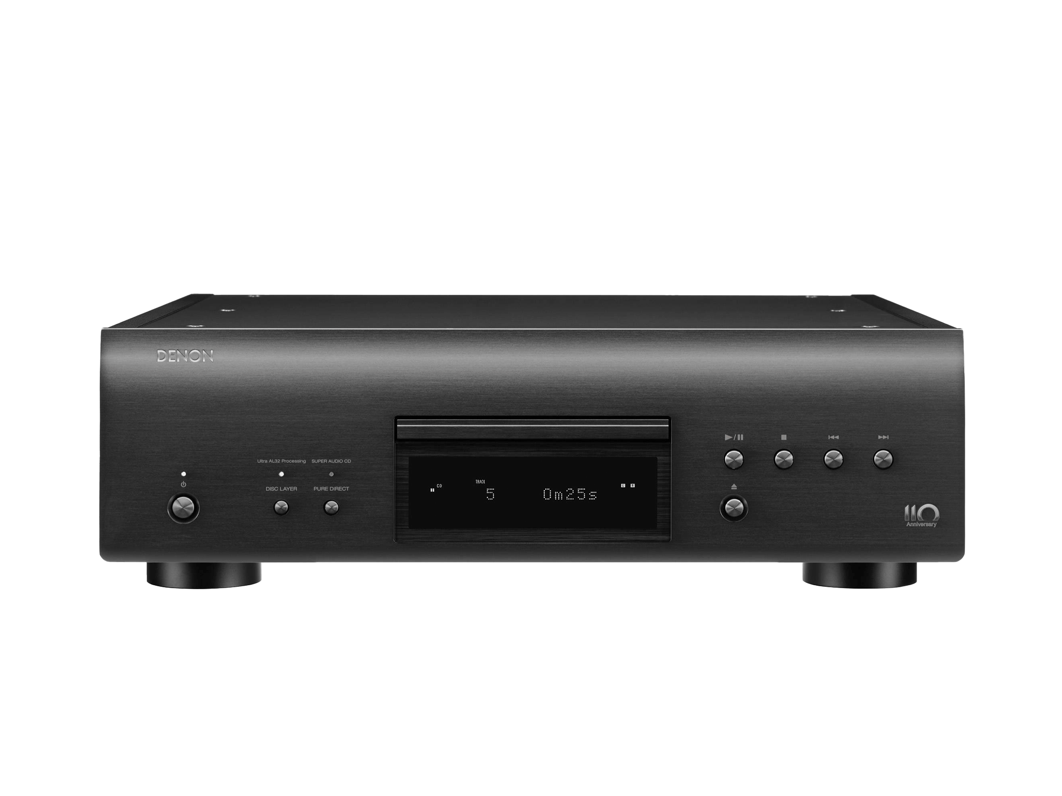 Denon DCD-A110 Silver Graphite — SACD/CD-проигрыватель, созданный к 110-летнему юбилею компании Denon. Оснащен четырьмя цифро-аналоговыми преобразователями Burr Brown PCM1795, работающими в параллельном режиме. Фирменная цифровая обработка Ultra AL32 Processing Plus с увеличенной в 16 раз тактовой частотой обработки сигнала позволяет воссоздать звук, максимально приближенный к оригинальной записи. Механизм транспорта и шасси выполнены с высокой степенью демпфирования, что исключает резонансы и улучшает стабильность воспроизведения. Использование толстого алюминиевого литого основания и двухсторонних стальных усилений обеспечивает жесткость конструкции. Применены медные экраны для наиболее чувствительных частей схемы, что снижает влияние электромагнитных помех. Режим Pure Direct позволяет отключать цифровые цепи и дисплей для достижения максимальной чистоты звука. Denon DCD-A110 поддерживает воспроизведение SACD и CD, а также файлов высокого разрешения (WAV, FLAC, ALAC, AIFF до 24 бит/192 кГц и DSD до 5.6 МГц).