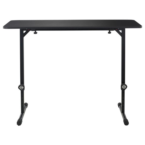 K&M 12160 DJ Table Bundle — устойчивый стол и регулируемая полка для ноутбука или контроллера. Комплект разработан с учетом нужд как стационарных студий, так и гастролирующих артистов: разборная конструкция со стальной рамой и быстросъемными креплениями позволяет оперативно подготовить место к работе. Столешница из МДФ обладает оптимальными габаритами для размещения микшера и проигрывателей, а система регулировки высоты с шагом 30 мм и настраиваемые опорные заглушки гарантируют стабильность даже на неровных поверхностях.