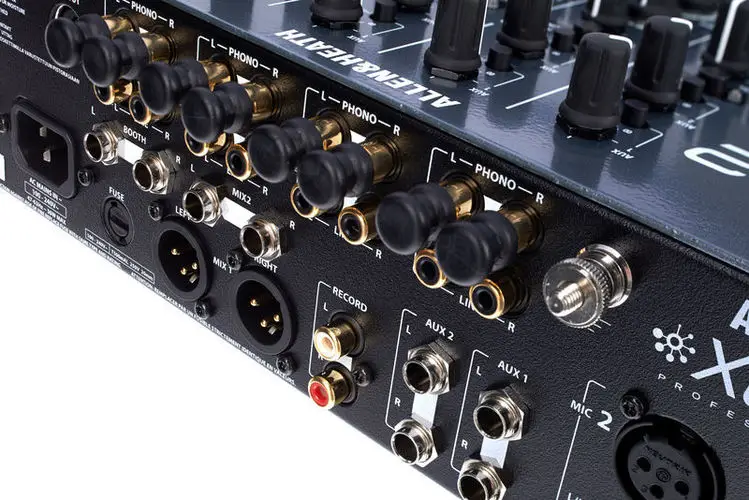 Кроме этого на фронтальной стороне корпуса отсутствует система управления работой кроссфейдера. Можно заметить, что по бокам регулятора общей громкости остались лишь 5-сегментные индикаторы уровня выходного сигнала. В сравнении с моделью S8 также не хватает RCA-входов, которые используются для подключения CD-плейеров и dj виниловых проигрывателей.