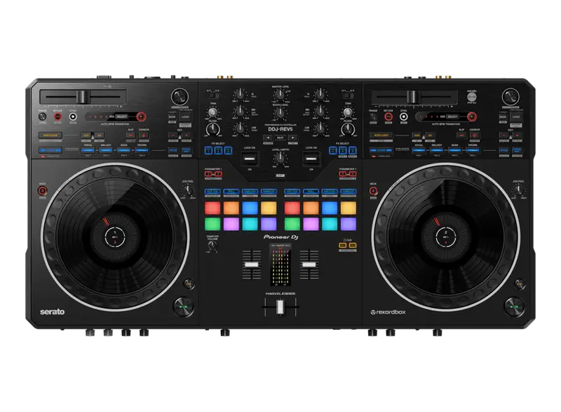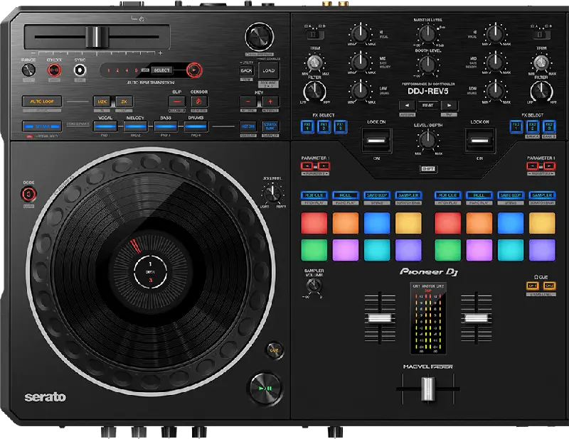 Pioneer DDJ-FLX10 - DJ-контроллер для мэшапов и ремиксов. С помощью DDJ-FLX10 можно управлять громкостью вокала, ударных или других инструментов по-отдельности, переносить компоненты дорожек между деками и настраивать данные для отображения на джогах. Совместим с rekordbox и Serato DJ Pro.