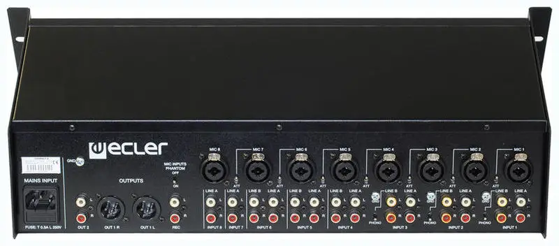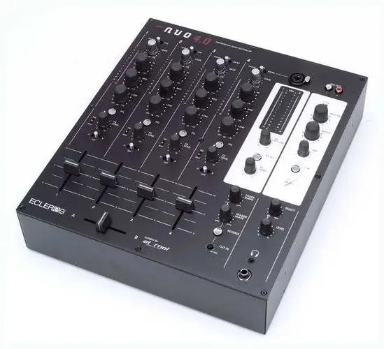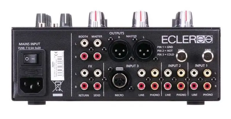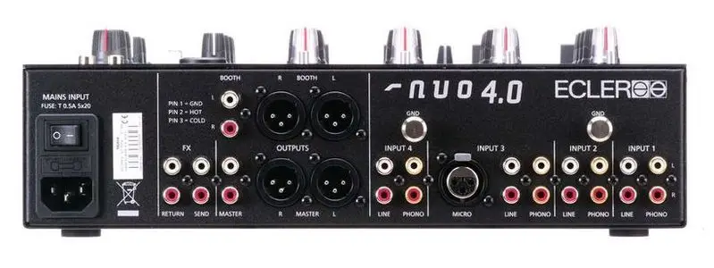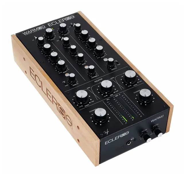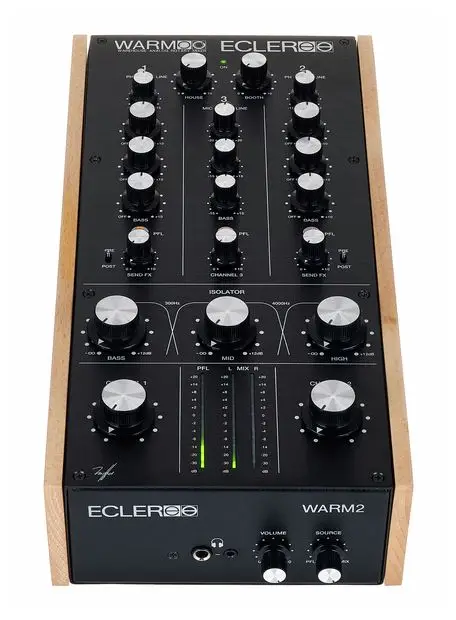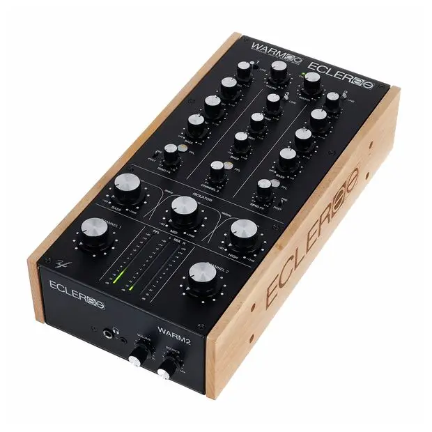 Ecler WARM4 — 4-канальный аналоговый DJ-микшер с ротарными регуляторами, разработанный и произведенный в Барселоне. Оснащен четырьмя каналами с независимыми входами Phono и Line, двумя микрофонными входами (XLR и комбинированный XLR/6,3 мм TRS). Каждый канал имеет 3-полосный эквалайзер с полным срезом частот и изолятор 4-го порядка (300 Гц и 4 кГц, -∞/+12 дБ, 24 дБ/октава), а также встроенный сабгармонический синтезатор для усиления саба. Микшер предоставляет функции FX send/return с возможностью выбора pre/post fader для каждого канала. Выходы включают мастер (XLR и RCA), мониторы(XLR и RCA), рекорд (RCA) и наушники (6,3 мм и 3,5 мм). Устройство оснащено высококачественными потенциометрами Alps с металлическими валами и деревянными боковыми панелями. Встроенный блок питания поддерживает напряжение 90–264 В AC.