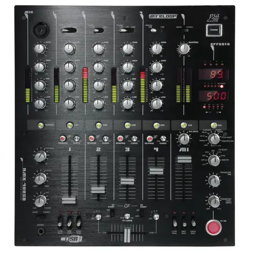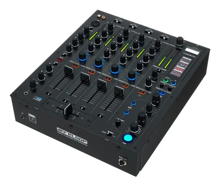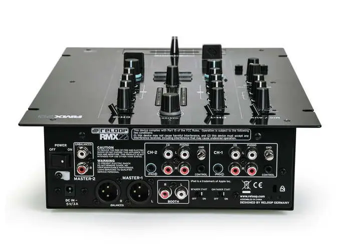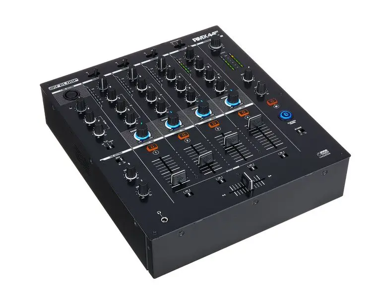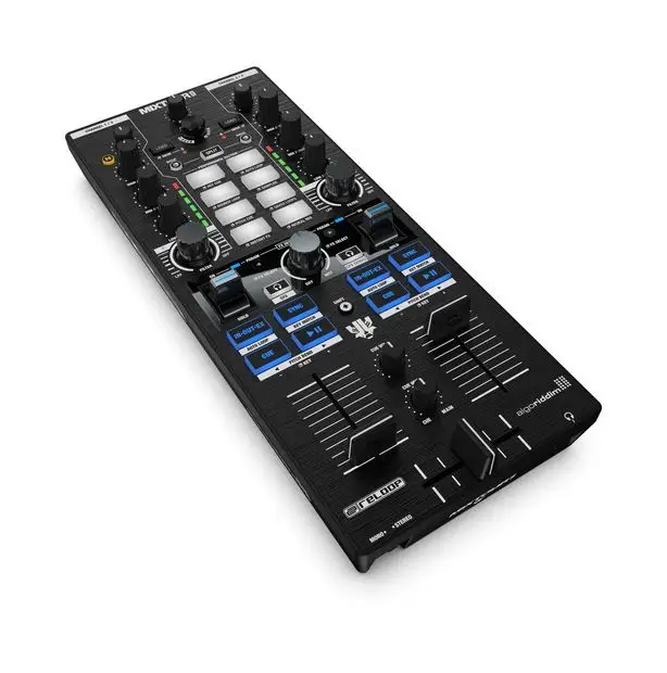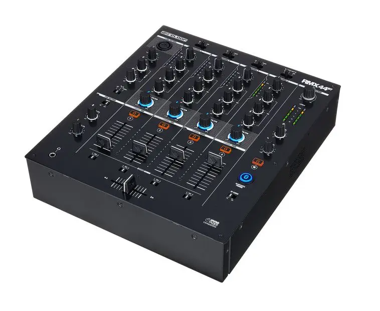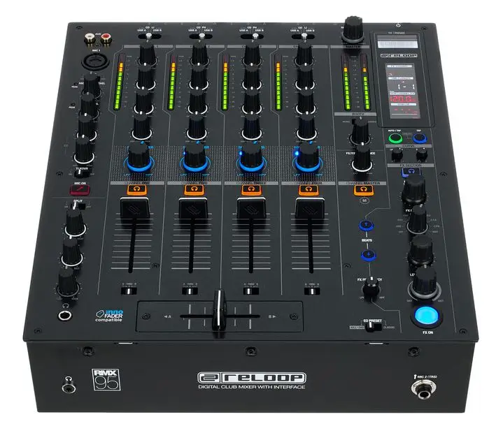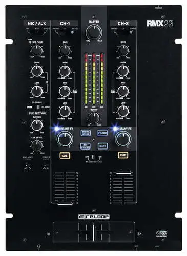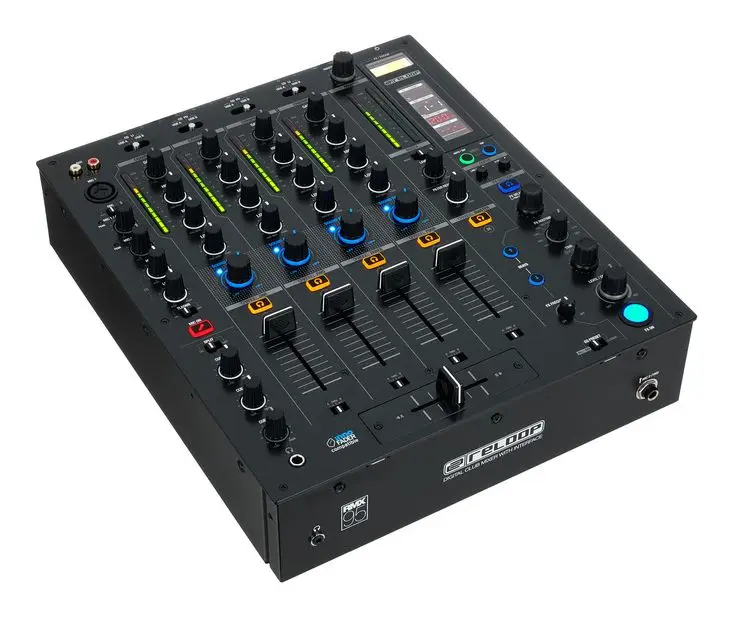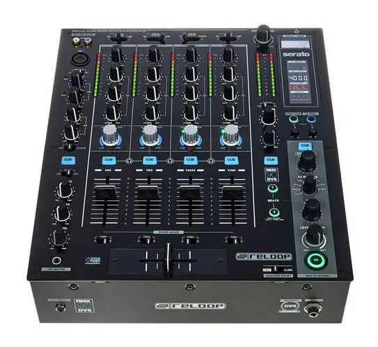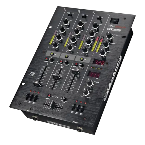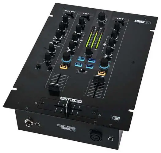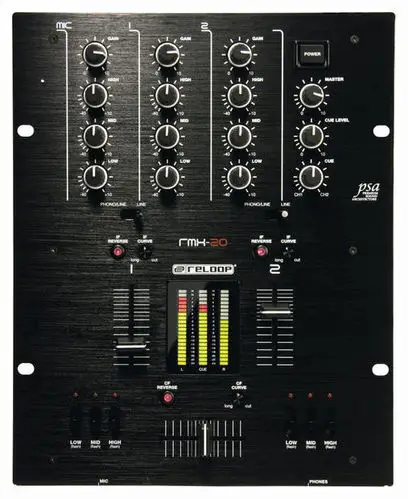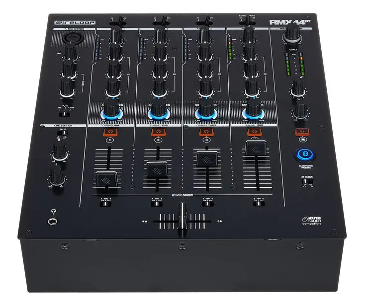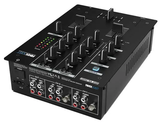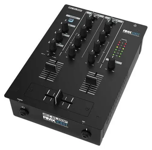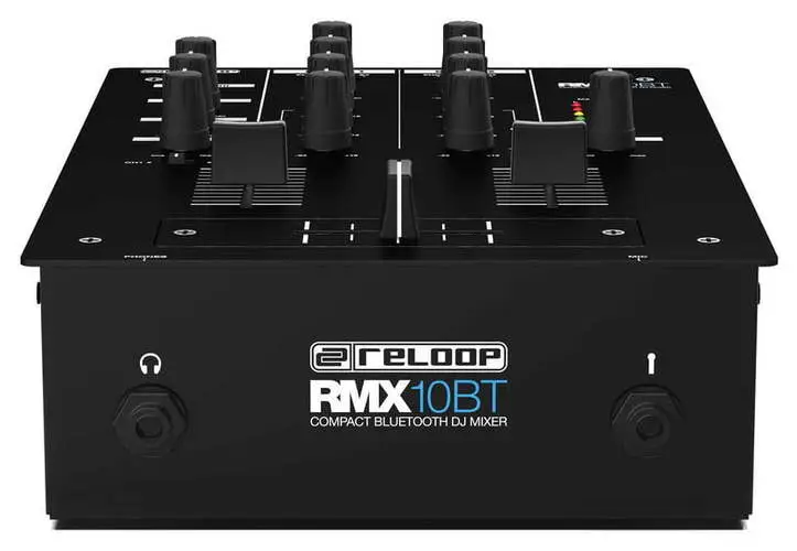 Reloop RMX-30 BT — 3-канальный DJ-микшер с интегрированным Bluetooth. Оснащен 8 входами (2 Phono RCA, 4 Line RCA, 1 микрофонный TS, 1 Bluetooth) и 4 выходами (основной XLR и RCA, Rec RCA, наушники 6.3 мм). Каждый канал имеет 3-полосный эквалайзер и регулятор усиления. Микрофонный вход оснащен 2-полосным EQ и отдельным регулятором громкости. Сменный 45 мм кроссфейдер и три линейных фейдера обеспечивают плавные переходы между треками. Встроенный Bluetooth позволяет передавать музыку с мобильных устройств напрямую на канал 1 или 2, упрощая интеграцию цифровых источников. Металлический корпус с черным металлическим покрытием обеспечивает прочность и надежность устройства. В комплект входят сетевой кабель, RCA-кабель, альтернативные ножки и руководство пользователя.