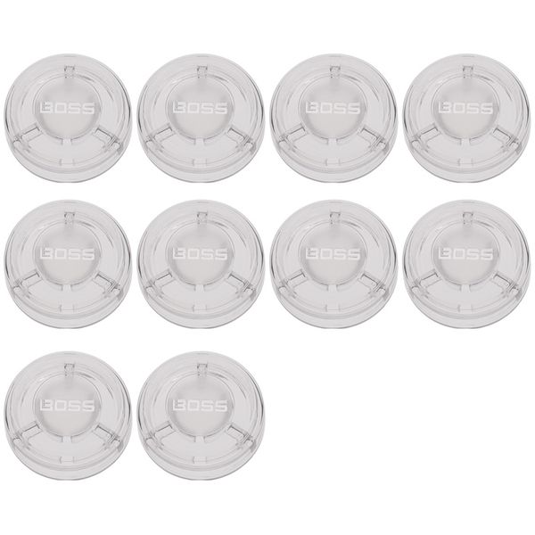 Boss FSC-10 Footswitch Cap — комплект из 10 накладок (toppers) для ножных переключателей педалей, предназначенный для улучшения видимости и удобства нажатия традиционных металлических футсвитчей BOSS. Изготовленные из прочного прозрачного поликарбоната, колпачки пропускают свет светодиодов, обеспечивая отличную читаемость индикации на сцене и в студии. Увеличенная площадь нажатия гарантирует комфортную и точную работу в любой обуви — или даже без неё. Система press-on позволяет быстро устанавливать и снимать колпачки без инструментов.