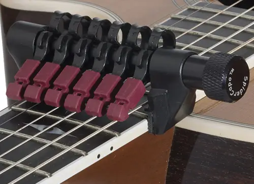 Каподастр – это специальный зажим, что обычно применяется музыкантами во время игры на различных струнно-щипковых инструментах. Данное приспособление позволяет изменять тональность путем искусственного уменьшения звучащей части струны. При помощи этого уникального прибора, у музыканта появляется возможность поиска оптимальной тональности произведения, исходя из своего голоса.