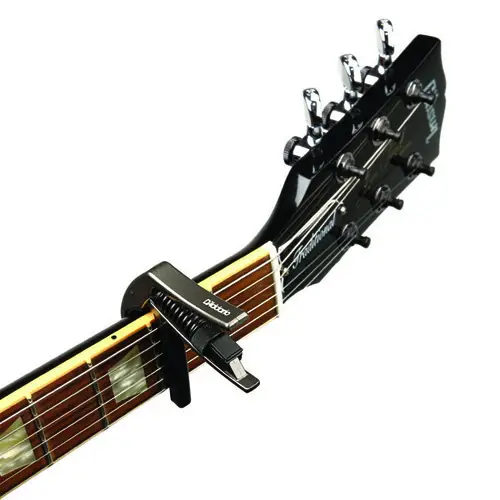 Перед там как купить каподастр в СПб стоит понять, как им пользоваться. Приспособление просто закрепляется на гриф, чем дальше будет расположен зажим струн относительно головки грифа, тем звучание инструмента будет выше. Размещать кадастр нужно непосредственно на ладовых порожках. После его закрепления можно сыграть несколько простых аккордов и, тем самым, оценить звучание гитары.