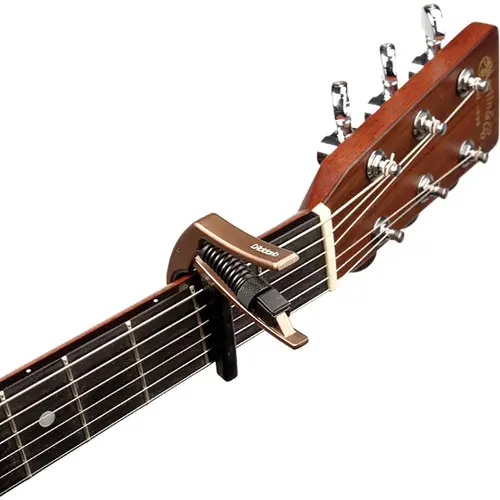 Каподастр – это специальный зажим, что обычно применяется музыкантами во время игры на различных струнно-щипковых инструментах. Данное приспособление позволяет изменять тональность путем искусственного уменьшения звучащей части струны. При помощи этого уникального прибора, у музыканта появляется возможность поиска оптимальной тональности произведения, исходя из своего голоса.