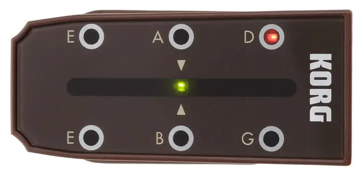 Имеются два ярких и четких индикатора на светодиодах с широким углом обзора. Индикатор струны показывает, какой из колок необходимо подрегулировать. Другой индикатор отображает степень отклонения от эталонной высоты. Принцип работы с устройством будет интуитивно понятен даже начинающему музыканту.