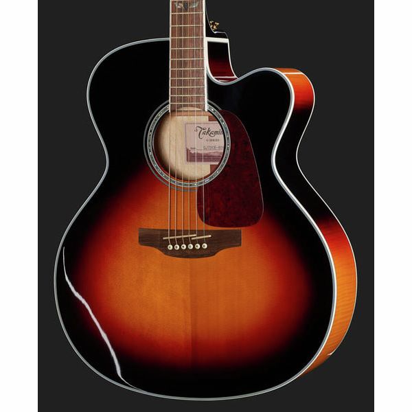 Гриф модели - кленовый, с палисандровой накладкой, обеспечивает высокую играбельность. Производитель оснастил инструмент фирменным предусилителем Takamine TP-40D с возможностью регулировки громкости, тона и эффектов управления. Также в наличии есть встроенный тюнер. Инструмент имеет палисандровый бридж и костяной струнодержатель.