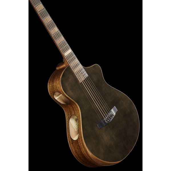 Modern Black оснащена мензурой 648 мм с шириной верхнего порожка 44.5 мм, которые считаются "золотым стандартом" среди исполнителей в стиле фингерстайл за оптимальное расстояние между струнами и их натяжение.