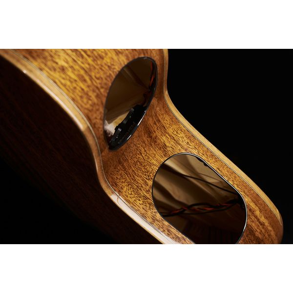 Вместо обычного резонаторного отверстия в центре корпуса, два специально расположенных резонаторных отверстия в обечайке влияют на резонанс Гельмгольца в корпусе гитары, усиливая динамику и высокие частоты акустического тембра. Это также позволяет игроку лучше контролировать естественное звучание гитары во время выступления, также позволяя зрителям слышать гитару. Помимо этого, поскольку на верхней деке отсутствует отверстие, она более упругая и резонирующая.