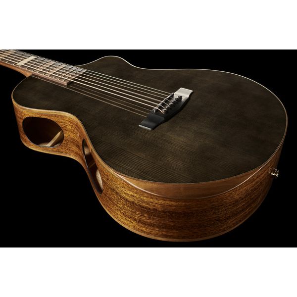 Для максимального комфорта и игровых качеств инструмента, были применены специальные скошенные вырезы в области локтя и ребер. Эти вырезы не только обеспечивают эргономичность, но и уникальный премиальный внешний вид, который не часто возможно встретить даже на акустических гитарах высшего класса.