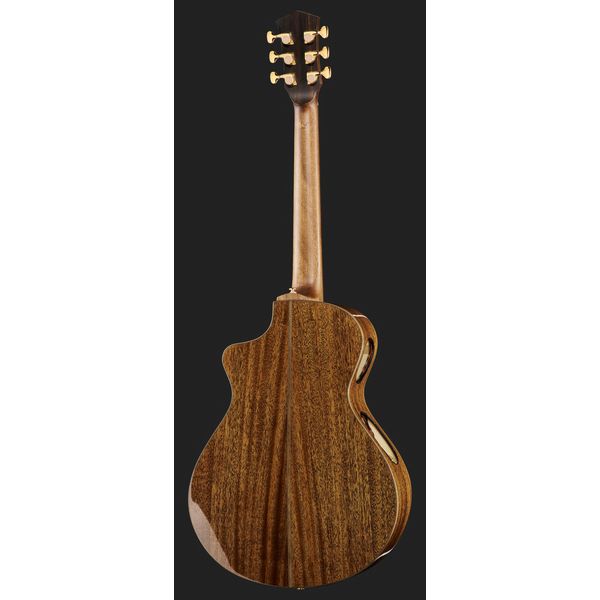 Со своим колокольно ясным звучанием в широком спектре, европейская ель идеальна для игры как перебором, так и аккордами. Богатство воздушных обертонов является сущностью этой пользующейся спросом древесины, представленной в этой модели. Яркое, мощное с теплыми средними частотами, красное дерево на протяжении десятилетий является лучшим выбором для задней деки и обечайки акустических гитар премиум класса.