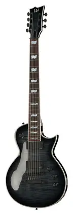 Корпус гитары выполнен из красного дерева с верхней частью из древесины огненного клена, а глубоко вклеенный гриф – из клена (трехчастный). Установлены активные датчики системы EMG 707/EMG 81-7, бридж Hipshot и надежные запирающие колки LTD.