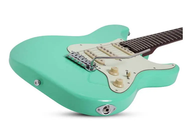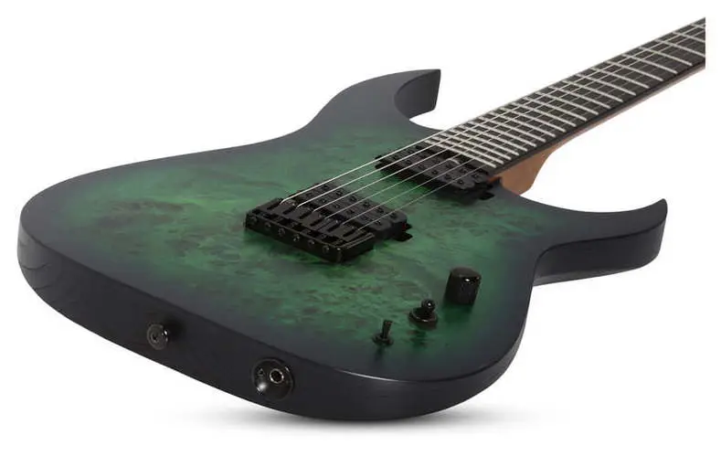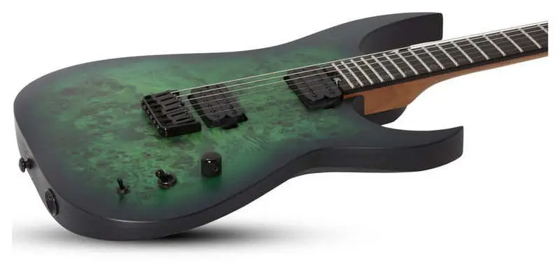 Schecter Omen Extreme-6 Gloss Natural — электрогитара с корпусом из красного дерева и топом из стеганого клёна. Гриф из клёна с накладкой из палисандра имеет профиль Thin "C" и радиус 355 мм. Мензура составляет 648 мм, а ширина верхнего порожка — 42 мм. Гитара оснащена 24 ладами X-Jumbo и инкрустацией грифа в виде абалоновых и перламутровых векторов. Звукосниматели — два хамбакера Schecter Diamond Plus, управляемые двумя регуляторами громкости, одним тоном с функцией Push/Pull и 3-позиционным переключателем. Бридж типа Tune-O-Matic и колки Schecter обеспечивают стабильность настройки.