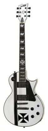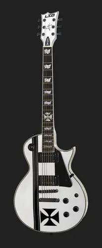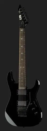 Модель LTD KH-202 BLK Kirk Hammett – подписная электрогитара Кирка Хамметта, соло-гитариста группы Metallica. Корпус выполнен из древесины американской липы, а привинченный гриф – из клена. Отделка Black: дека и фурнитура с черным покрытием, гриф естественного цвета с палисандровой накладкой и черной окраской головы. Маркеры ладов – рисунки черепов с костями. Поставлены датчики системы ESP Designed LH-301 и бридж модели Floyd Rose Special.
