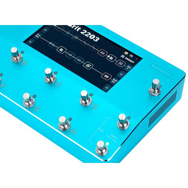 Neural DSP Quad Cortex Blue LTD — профессиональный напольный процессор и моделлер усилителей, предназначенный для гитаристов и басистов. Устройство объединяет четыре мощных DSP-блока на архитектуре Quad-Core SHARC с выделенным 2 ГГц процессором, обеспечивая одновременную работу нескольких усилителей, эффектов и стерео ревербераторов без потери качества сигнала. Система Neural Capture позволяет анализировать и воспроизводить звучание любых усилителей и кабинетов с высокой точностью, имитируя человеческое восприятие. Компактный корпус выполнен из прочных материалов, оснащен 7-дюймовым мультисенсорным дисплеем и 11 комбинированными педальными переключателями с ротари-контролем для удобного управления сложными цепями сигналов. Blue LTD представляет собой ограниченную серию в синем цвете.