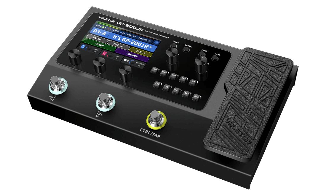 Valeton GP-200JR — компактный напольный гитарный процессор, выполненный в литом металлическом корпусе и использующий ту же моделирующую платформу, что и старшие устройства серии GP-200. Аппарат оснащен системой цифровой обработки с 24-битным преобразованием, цепочкой из 11 одновременно активных модулей эффектов, расширенной библиотекой усилителей, кабинетов, педалей обработки и слотами пользовательских IR-импульсов. Конструкция включает встроенную педаль экспрессии с возможностью управления тремя параметрами, 19 элементов управления для работы с модулями, большое графическое окно 4,3" TFT для навигации, а также интегрированный USB-аудиоинтерфейс 6 х 4 с функциями реампинга и лупбэка. Процессор ориентирован на живую игру, запись, репетиции и студийную работу, имеет универсальную систему входов/выходов, включая инструментальный вход, FX-петлю, XLR и TRS-линии, AUX-вход и выход на наушники.