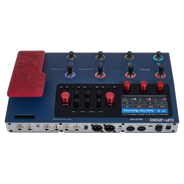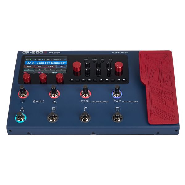 Valeton GP-200X — юбилейная версия гитарного процессора, основаного на HD-моделирующей платформе, построенный в прочном металлическом корпусе и рассчитанный на живые выступления, репетиции и студийную работу. Он объединяет цифровую обработку сигнала, 24-битное/44.1 кГц преобразование, гибкую конфигурацию эффектов и продуманную систему входов-выходов. Устройство располагает встроенным лупером, драм-машиной, тюнером, педалью экспрессии, поддерживает пользовательские IR-импульсы и выступает одновременно как полноценный аудиоинтерфейс с USB-связью для записи, реампинга и работы в DAW.
