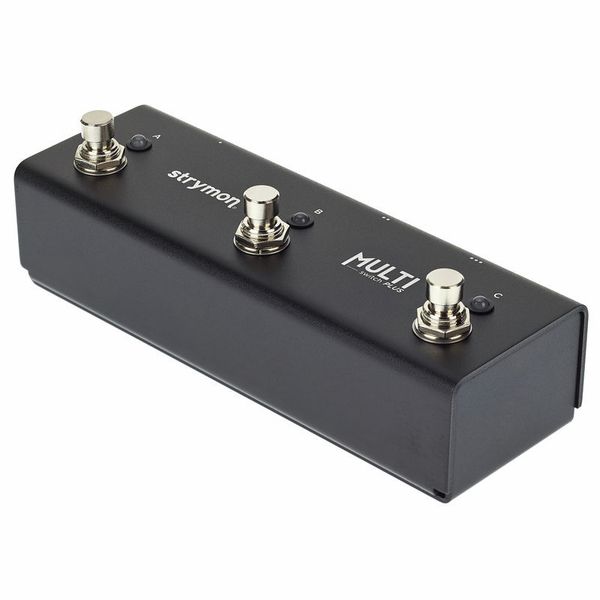 Strymon MultiSwitch Plus — внешний напольный контроллер на базе трех независимых footswitch-контуров, предназначенный для расширения функциональности гитарных и студийных эффектов Strymon без изменения их сигнального тракта. Устройство формирует TRS-управление по пассивной схеме, что исключает необходимость в отдельном питании и обеспечивает непосредственный доступ к пресетам, банкам, transport-функциям, tap-tempo и дополнительным алгоритмам совместимых процессоров. Конструкция выполнена в жестком анодированном алюминиевом корпусе с несущей механикой для интенсивного напольного применения, предусматривает подключение до трех Strymon-устройств через независимые TRS-линии и режимную конфигурацию для работы с пресетами, looper-функциями, Sound-On-Sound-операциями, управлением скоростью ленты, Boost, Freeze, Infinite и другими вспомогательными параметрами.