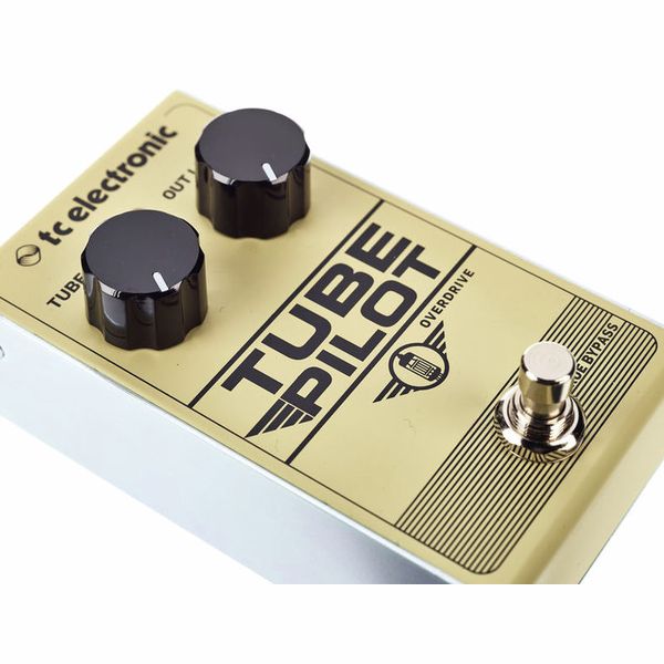 TC Electronic Tube Pilot Overdrive — педаль перегруза. В основе схемы — ламповый каскад предусиления, который формирует естественный клиппинг без цифровой эмуляции. Регулятор Tube Drive управляет степенью перегруза. Out Level отвечает за выходной уровень сигнала. Педаль реагирует на динамику игры и атаку медиатора, позволяя варьировать характер звучания от тёплого и мягкого до агрессивного и насыщенного. Схема оснащена True Bypass для сохранения целостности сигнала при отключённом эффекте.