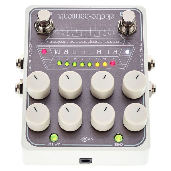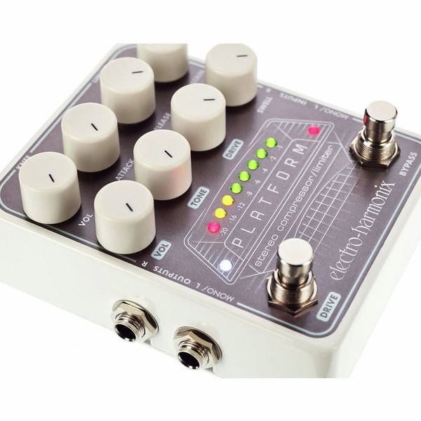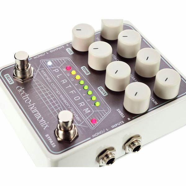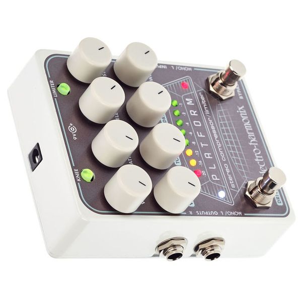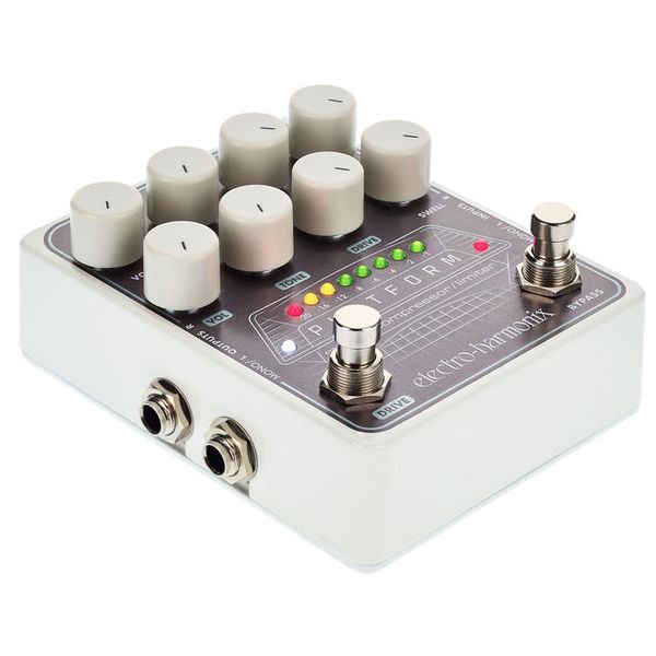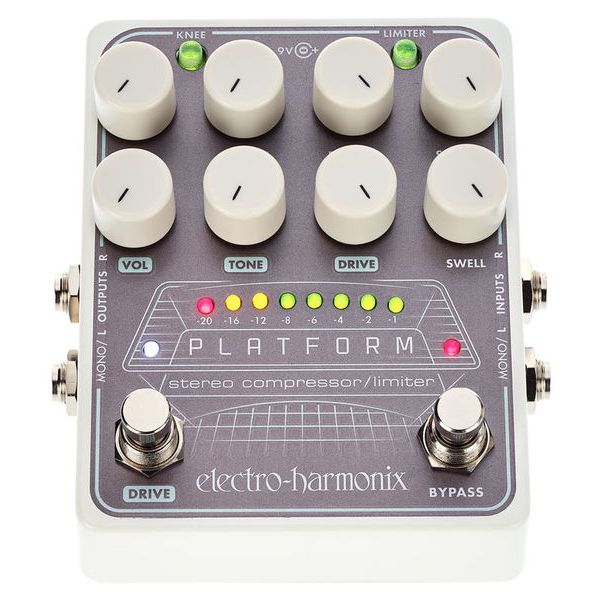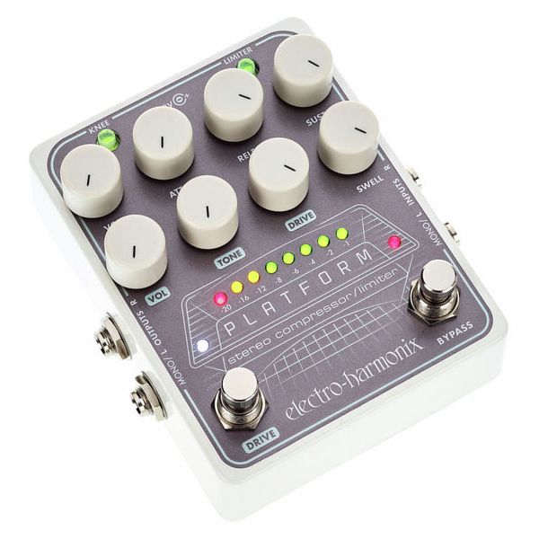 Педаль Electro-Harmonix Platform Compressor/Limiter совмещает в себе эффекты компрессора и лимитера. Этот профессиональный стереоэффект включает в себя функции volume swell и tape reverse, а также overdrive. Педаль мощная и отлично подойдет для студийной работы или постпродакшна, но при этом достаточно компактна, чтобы взять ее с собой на концерт.