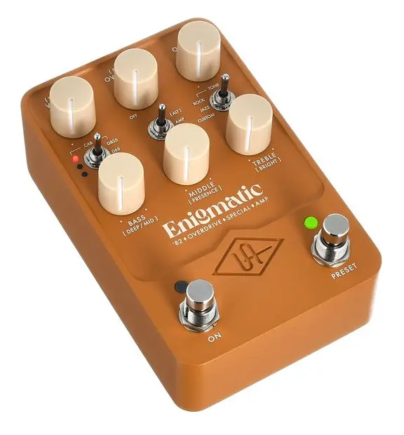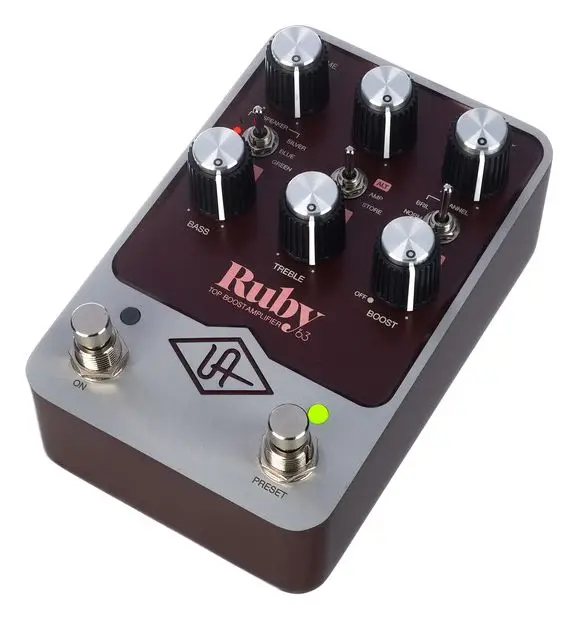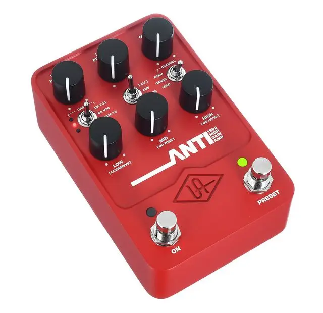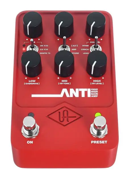 Universal Audio UAFX Knuckles '92 — педаль эффектов для электрогитары с эмуляцией усилителя Mesa Boogie Dual Rectifier, характерного для хард-рока и металла. Педаль предоставляет три канала усиления, поддерживает переключение между EL-34 и 6L6 лампами, а также различными режимами ректайфера (транзисторный и ламповый). Встроенные TS-овердрайв и шумоподавитель позволяют добиться плотного и четкого звука на высоких уровнях гейна. Педаль поддерживает шесть конфигураций микрофонов и кабинетов, которые можно персонализировать через UAFX App. Приложение также позволяет сохранять пресеты и настраивать параметры. У педали есть стереовыходы и USB-C для обновлений.