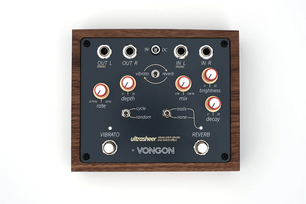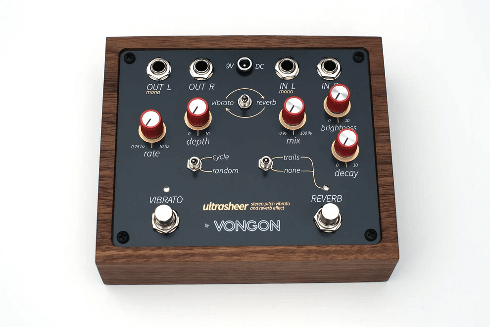 Vongon Ultrasheer — стереофонический эффект-процессор, объединяющий цифровой ревербератор и вибрато в одном корпусе, вдохновленный Lexicon 224 конца 1970-х. Устройство ориентировано на создание как насыщенных, «плывущих» пространств, так и небольших комнат, с акцентом на тактильный контроль. Корпус выполнен из цельного массива ореха. Цифровая обработка с пониженной разрядностью до 16 бит придает «винтажность» звучанию.