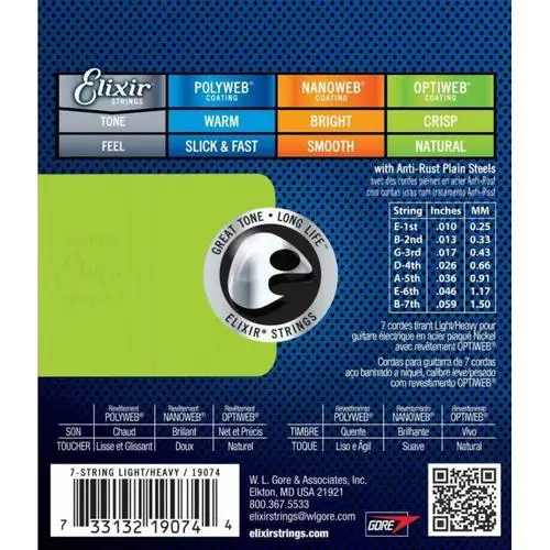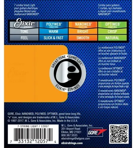 Струны для электрогитар Elixir 12057 Nanoweb Light 7 String