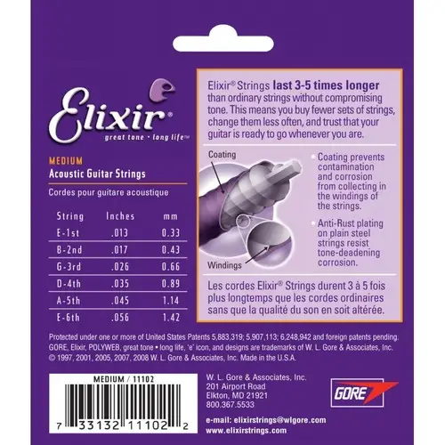 Струны для акустических гитар Elixir 11102 Nanoweb Medium