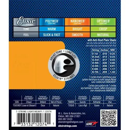 Струны для электрогитар Elixir 12074 Nanoweb Light/Heavy