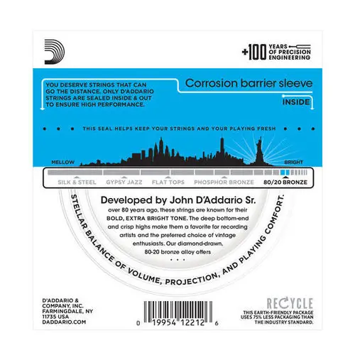 Струны для акустических гитар D'Addario EJ14 Bronze 80/20