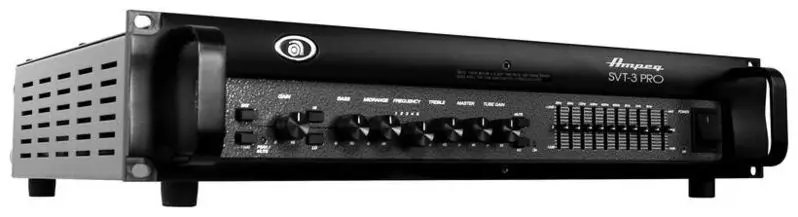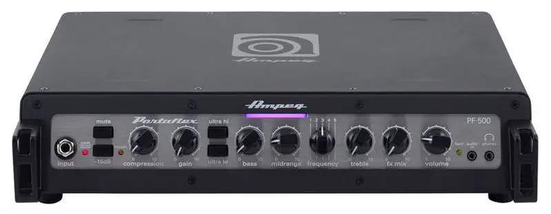 Компактный портативный усилитель для бас-гитары PF 800 из серии Portaflex изготовлен компанией Ampeg. Устройство имеет мощность 800 Вт. Класс усиления – D. Имеется встроенный преусилитель и компрессор. Басовый усилитель имеет три регулятора тона – Bass, Mid, Treble.